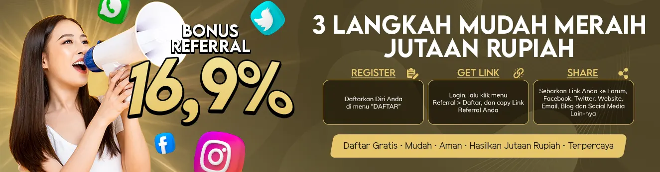 Referral system tidak dipungut biaya apapun. Hanya dengan modal online saja setelah itu Anda hanya tinggal mengecek keuntungan Anda yang dapat dilihat secara online kapanpun dan dimanapun. Register sekarang juga dan referensikan Link Referral Anda